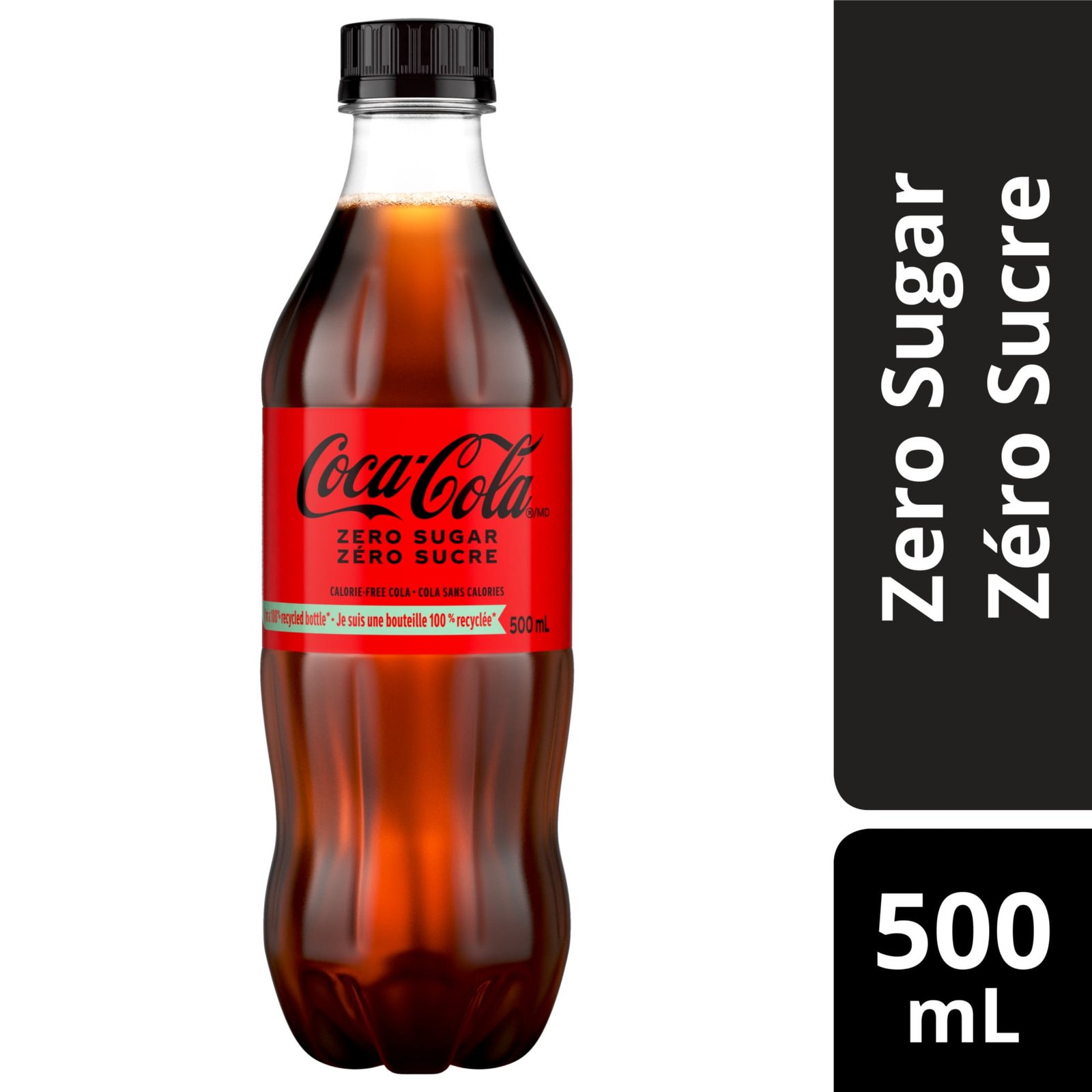 | Fabric Property | Great Coca-Cola taste. zero sugar Refreshing. crisp taste pairs perfectly with a meal or with friends 34 mg of caffeine in each 355 mL serving 500 mL in each bottle This carbonated beverage is best enjoyed ice-cold for maximum refreshment. |