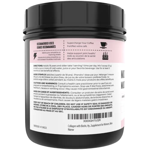 Collagen with Biotin. Hyaluronic Acid. Vitamin C. 1 lb Powder. Hydrolyzed Multi Collagen Peptide Protein. Types I. II. III. V. X. Collagen for Hair. Skin. Nails*. Collagen Supplement for Women. Men