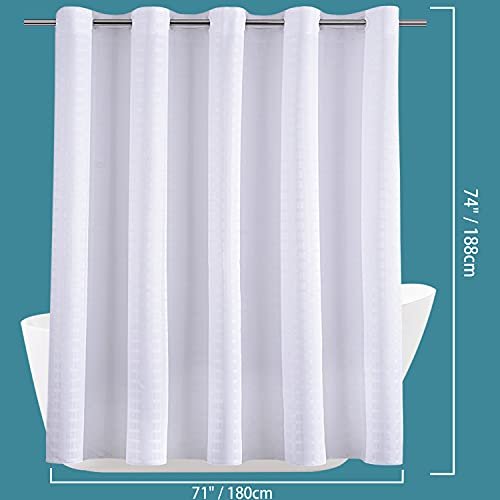 SHOWER CURTAIN SIZE : 71 Inch (W) x 74 Inch (L). machine washable.