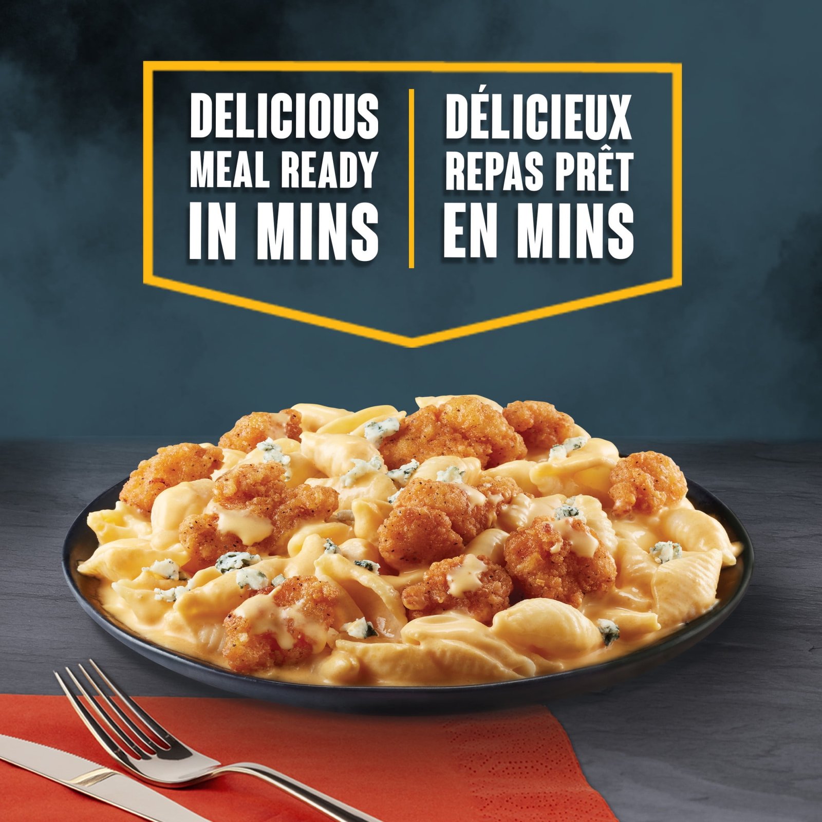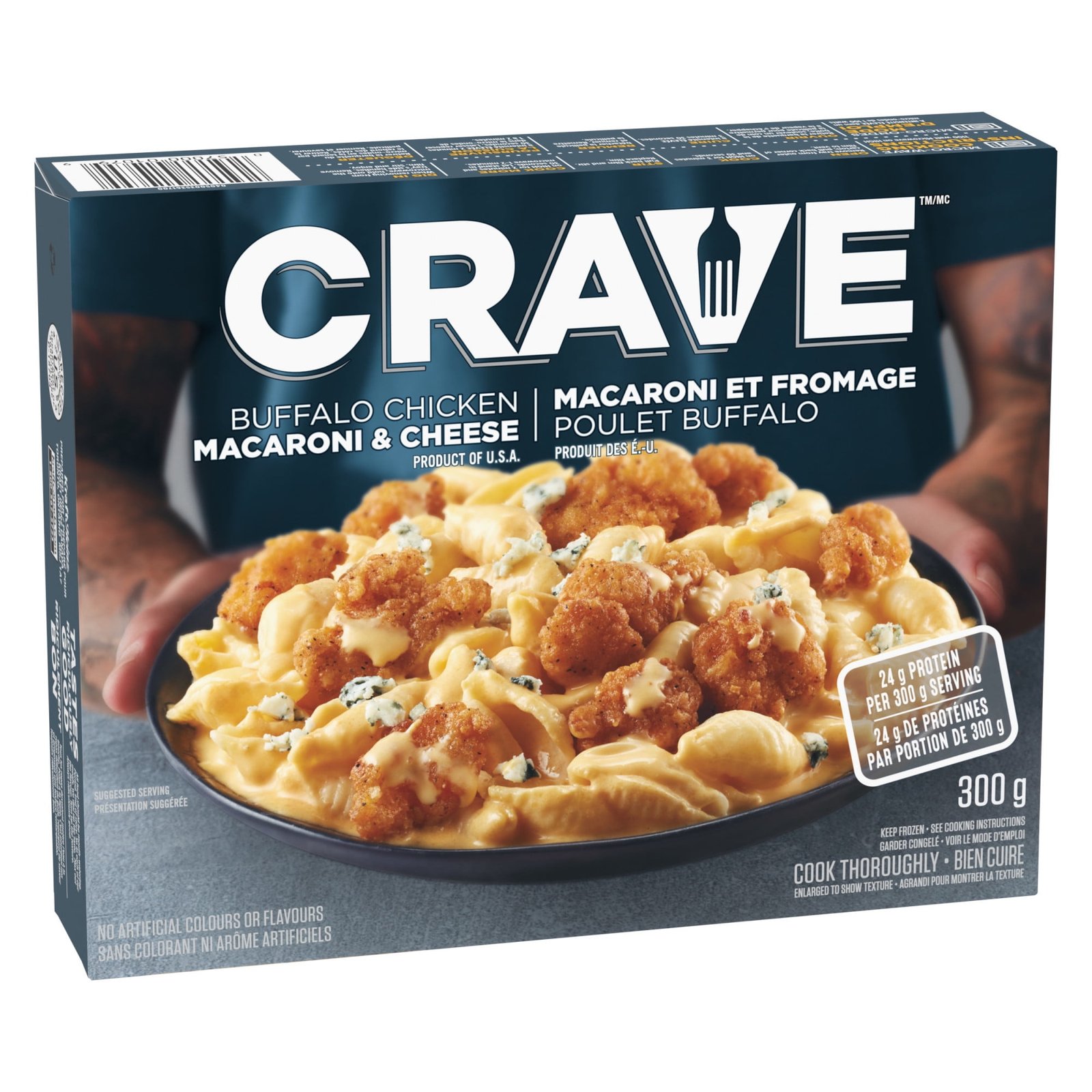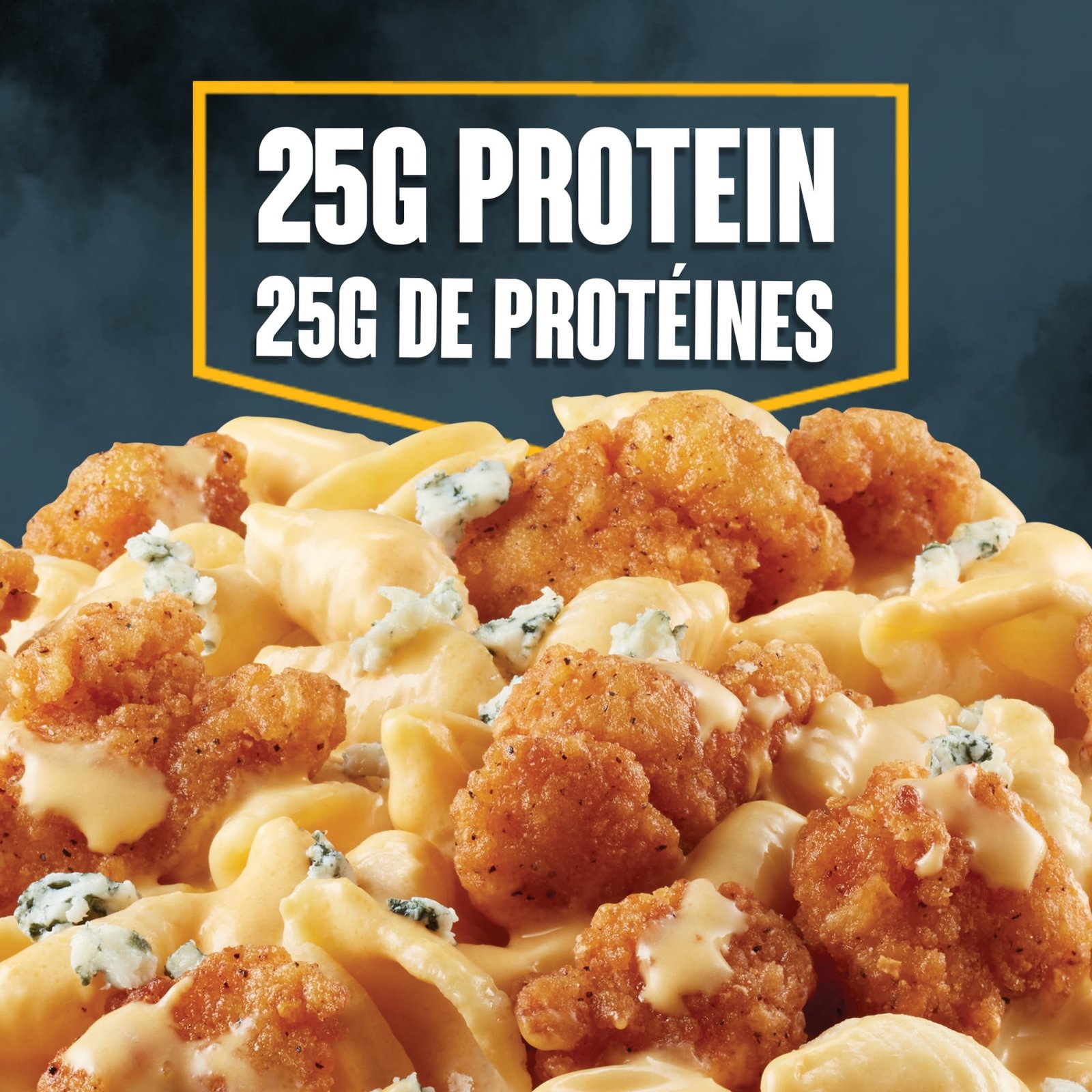 | Ingredients | SAUCE (WATER. PASTEURIZED PROCESS WHITE CHEDDAR CHEESE [MILK]. SOYBEAN OIL. WHEY PROTEIN CONCENTRATE [MILK]. CAYENNE PEPPER PUREE [CAYENNE PEPPERS. SALT. ACETIC ACID]. DRY SKIM MILK. VINEGAR. MODIFIED CORN STARCH. SODIUM PHOSPHATE. MODIFIED CELLULOSE. POTASSIUM CHLORIDE. ANNATTO. SALT). WATER. POPCORN CHICKEN (COOKED CHICKEN. BREADING [WHEAT FLOUR. WATER. MODIFIED CORN STARCH. SALT. RICE FLOUR. WHEAT GLUTEN. LEAVENING . DEXTROSE. YELLOW CORN FLOUR. SPICES. DRIED EGG WHITES. RICE STARCH. DRIED YEAST. DISODIUM INOSINATE AND DISODIUM GUANYLATE. CITRIC ACID. GARLIC POWDER. ONION POWDER. YEAST EXTRACT. EXTRACTIVES OF PAPRIKA AND ANNATTO. MONO AND DIGLYCERIDES. SUGAR. HYDROLYZED SOY PROTEIN. MODIFIED WHEAT STARCH. YEAST. CARAMEL COLOUR. GUAR GUM. NATURAL FLAVOUR]. WATER. SALT. SODIUM PHOSPHATE). COOKED ENRICHED MACARONI (WHEAT). BLUE CHEESE (MILK). POTATO STARCH. CARRAGEENAN. |