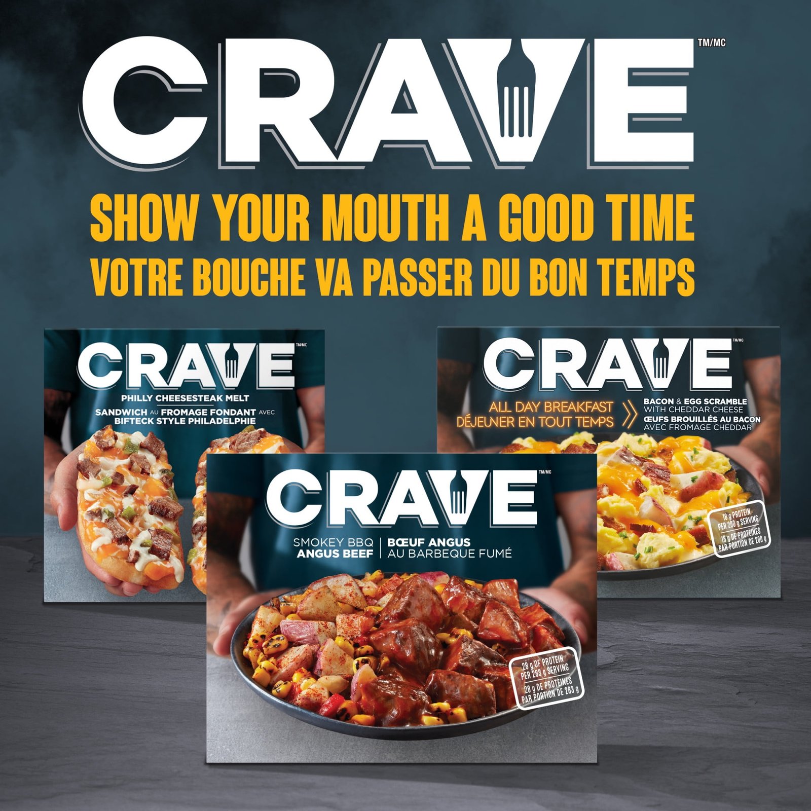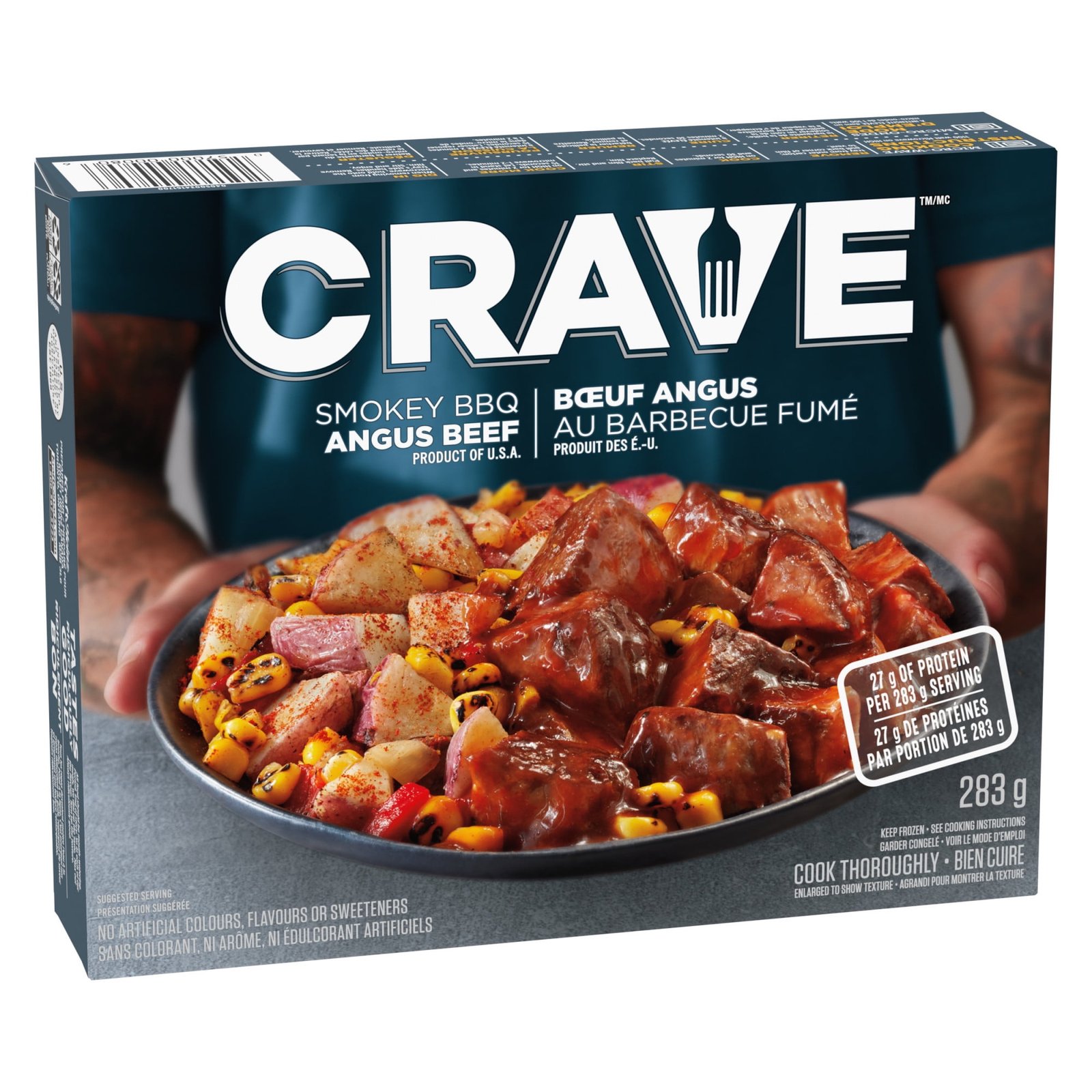 CRAVE Tastes Ridiculously Good We believe all food should be mouth-watering. Period. End of story. So in each of our meals. we dial up the taste. max out the flavor. turn up the texture. Sometimes you don’t just want meat. You want beef. As meat lovers. we’re happy to oblige. Get a load of this TENDER. ANGUS BEEF. slathered with a SWEET AND SMOKY SAUCE. And to make sure the sides don’t get left behind. we supercharged our ROASTED CORN POTATO HASH with a SMOKY SOUTHWEST-STYLE SEASONING. Are you fired up? Yeah. we thought so.• One 283g box of CRAVE Smokey BBQ Angus Beef