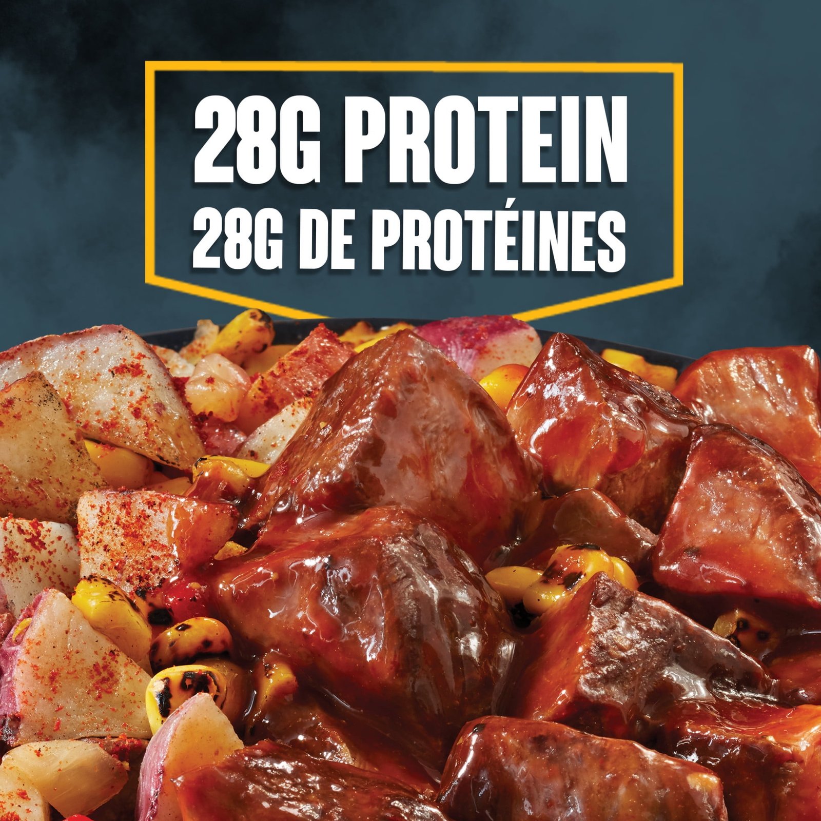 • Tender. Angus Beef. slathered with a sweet and smoky sauce served over a roasted corn potato hash