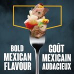 | Ingredients | Cooked enriched white rice. Cooked seasoned beef steak (beef. beef stock. seasoning. corn starch. salt. dextrose. caramel. spice extracts). Black beans. Water. Tomatillos. Red and green bell peppers. Green chili peppers. Corn. Monterey Jack cheese (milk). Garlic. Cilantro. Chicken fat. Jalapeno peppers. Modified corn starch. Concentrated lime juice. Sugar. Spices and herbs. Salt. Onion. Natural flavour. Citric acid. |