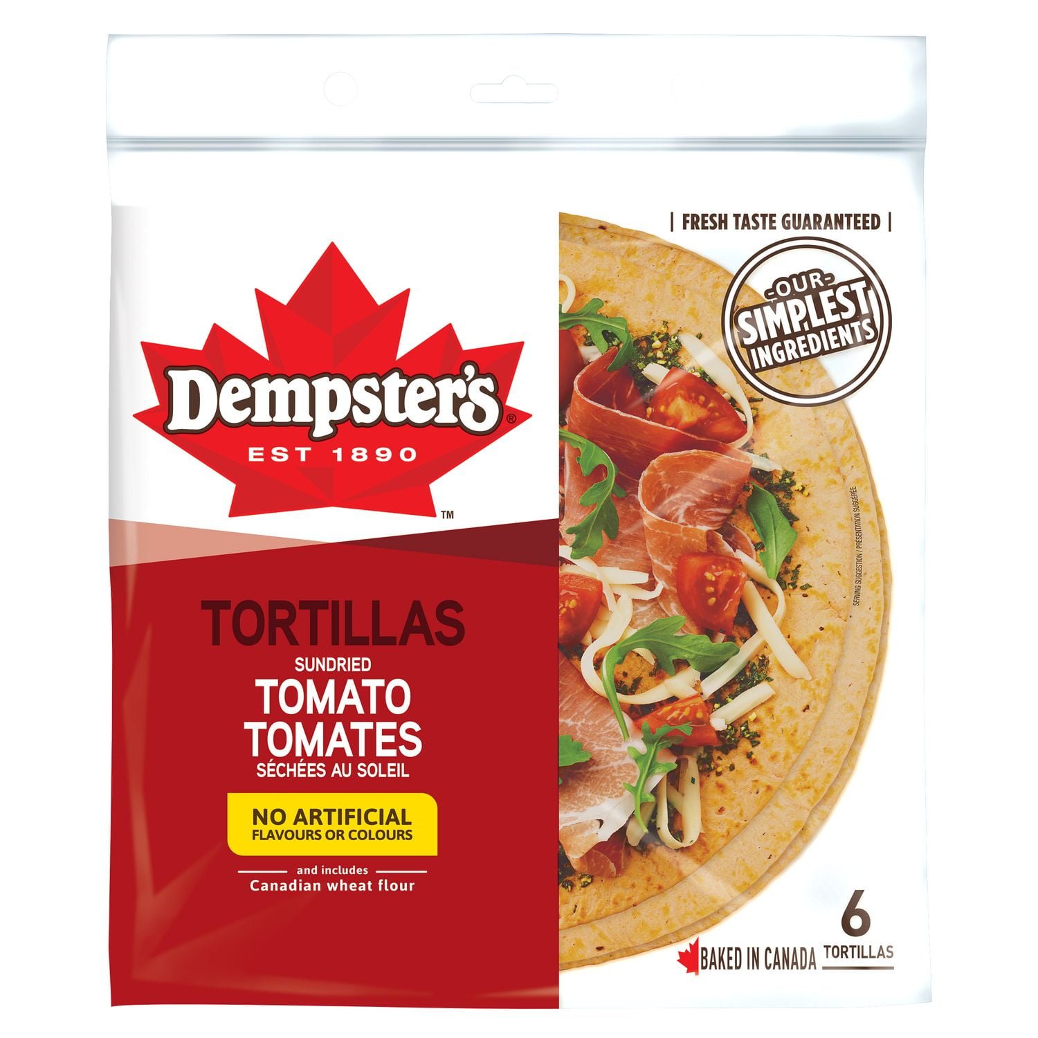 Dempster’s® Sundried Tomato Tortillas bring variety to mealtime. Made in Canada with no artificial flavours or colours. these tasty tortillas help you wrap. roll or bake your way to delicious dishes.