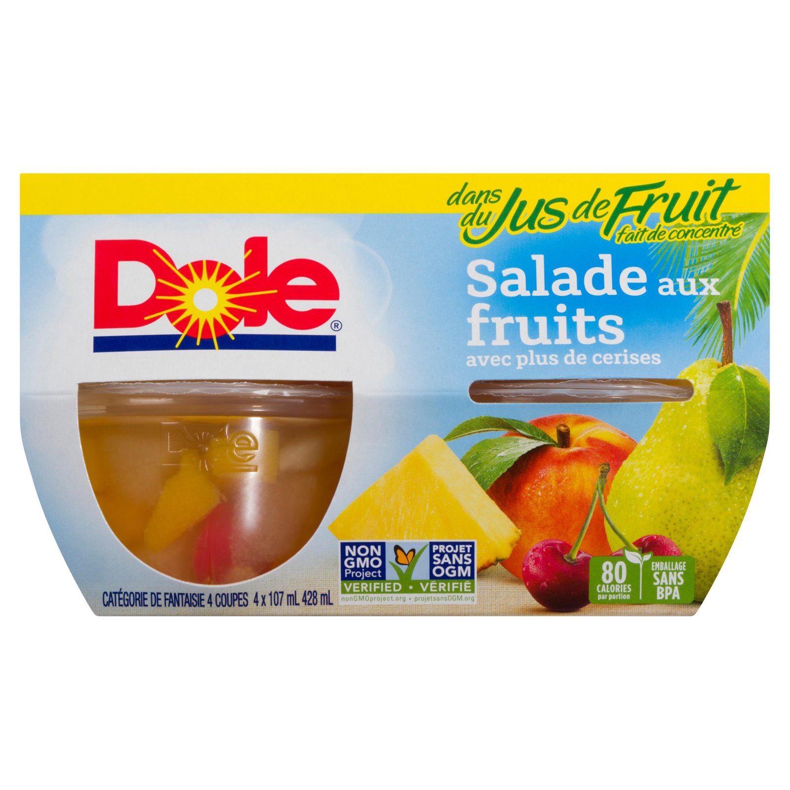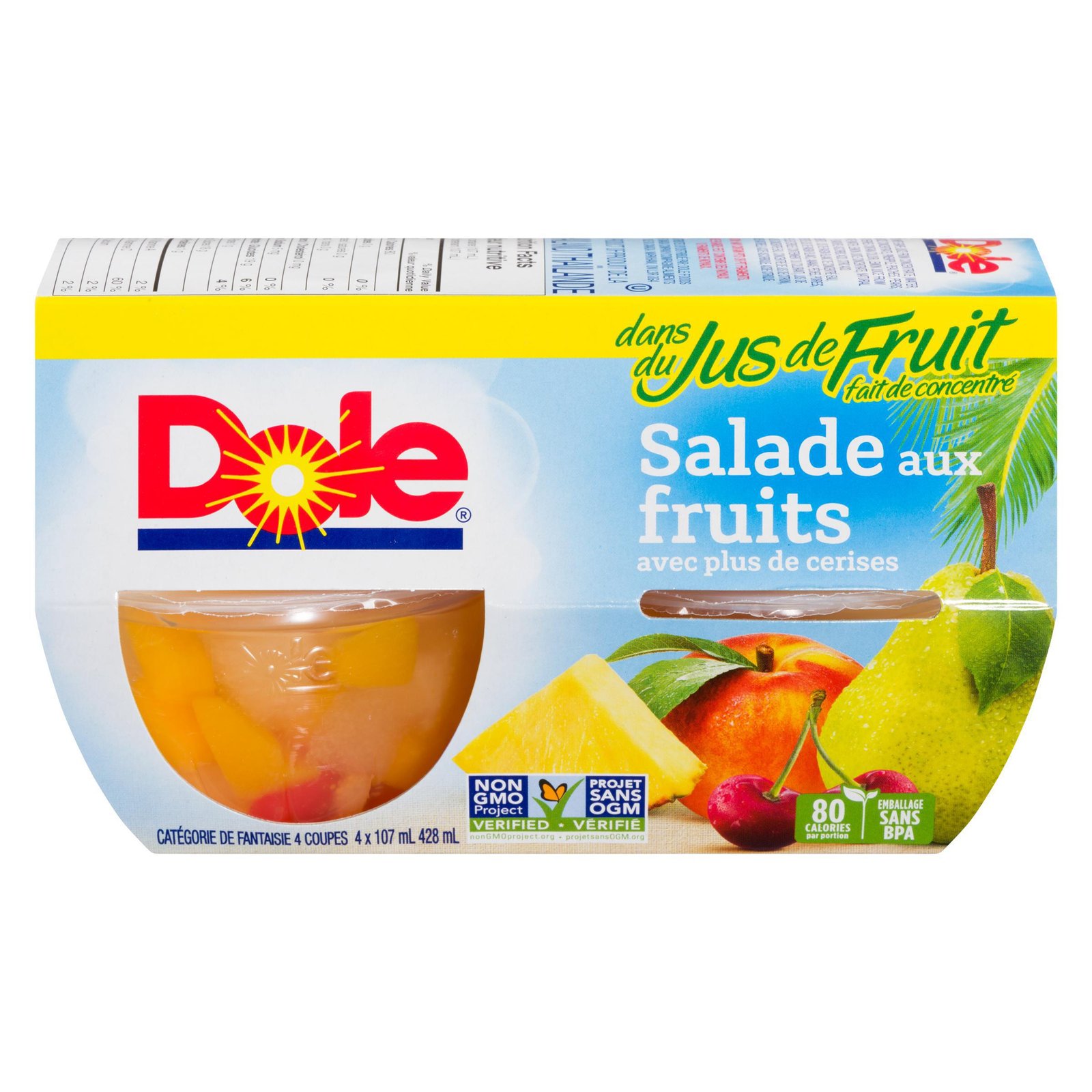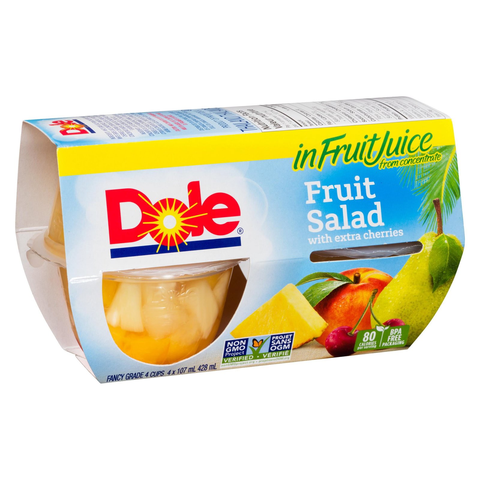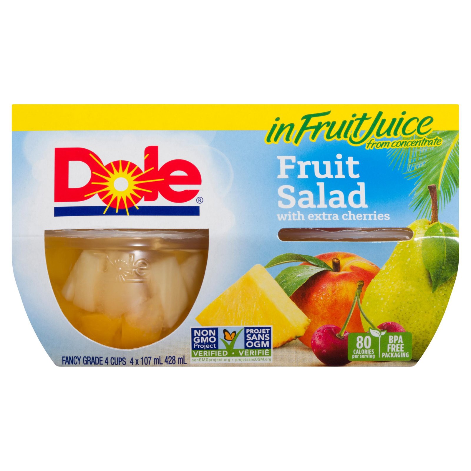 Dole Fruit Salad with Extra Cherries in Fruit Juices. 4 Cups. 428 mL