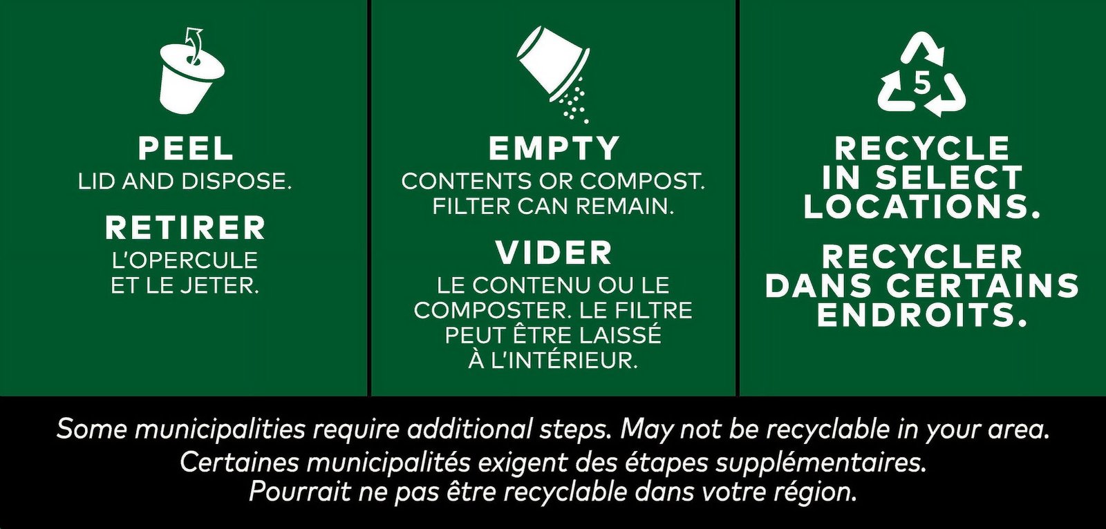 Our K-Cup pods are recyclable in select locations. They may not be recyclable in your area.