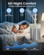 • 【Whisper-Quiet & Timer & Night Light】Operating at 24dB (quieter than a library whisper). our small humidifiers for bedroom combine a programmable timer (2/4/6/8hr) with an optional blue night light. perfect for peaceful sleeping environments. The soothing blue night light adds a calming atmosphere. while the cool mist increases humidity without raising the room temperature. promoting better sleep.