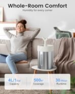 Feekaa Stainless Steel Humidifier Easy Clean. 4L/1Gal Cool Mist Humidifiers for Bedroom. Dishwasher Safe Humidifier Large Room up to 500 sq.ft. Humidifiers for Home Humidificateur Baby Nursery Office