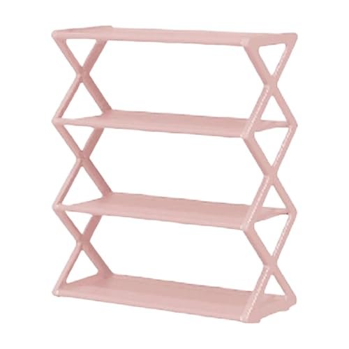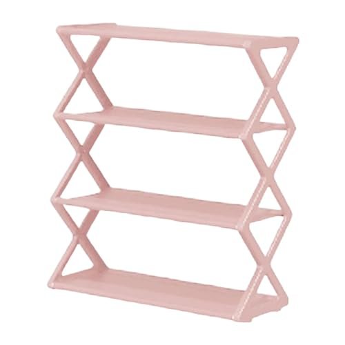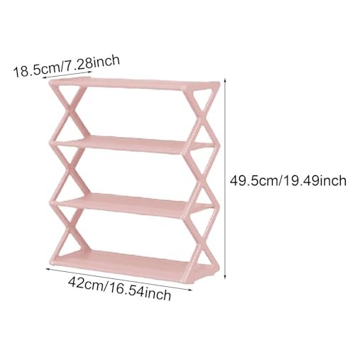 Fenteer 4 Tiers x Shaped Shoe Storage Rack Shoe Shelf Anti Slip Multipurpose for Entryway Smooth Edges Dustproof 16.5×7.3×19.5inch. Pink