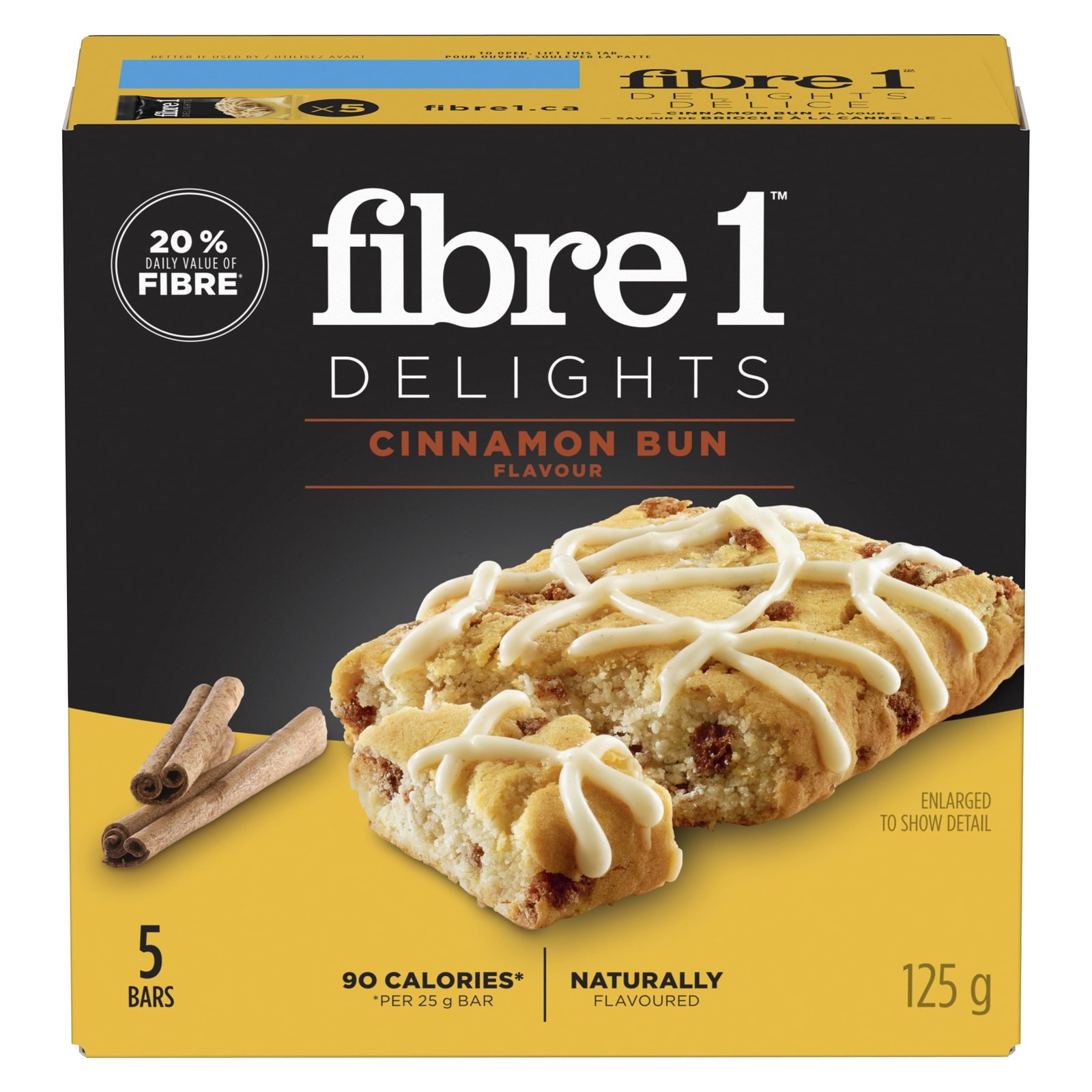| Fabric Property | • Have what you crave with Fibre 1 Cinnamon Bun • 20% daily value of fibre per serving • Naturally flavoured • Individually packaged • Want more of this tasty bar? Try other Fibre 1 Delights bars |
