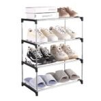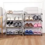 Fouews Small Shoe Rack. Narrow Stackable Shoe Shelf Organizer for Entryway. Doorway and Bedroom Closet (4-Tier. Black)