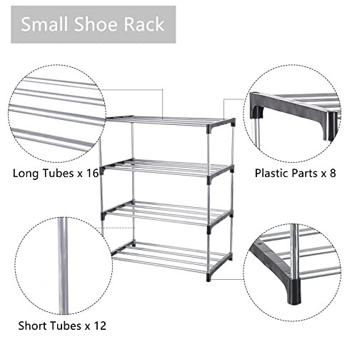 Fouews Small Shoe Rack. Narrow Stackable Shoe Shelf Organizer for Entryway. Doorway and Bedroom Closet (4-Tier. Black)
