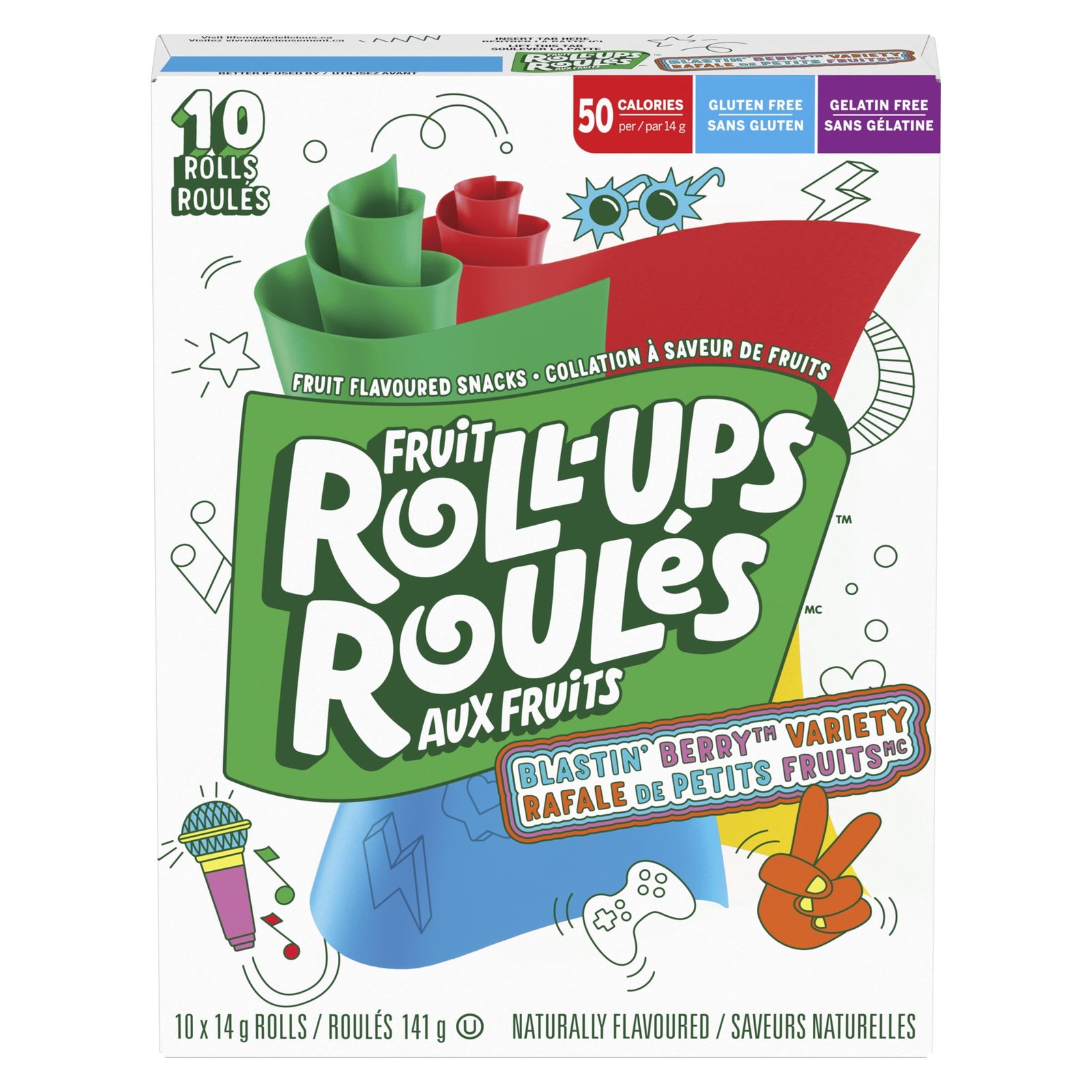 | Fabric Property | • FRUIT FLAVOURED SNACKS: Unwrap delicious fun with Fruit Roll-Ups Blastin’ Berry Fruit Flavoured Snacks Variety Pack; With wild flavours and colours. the possibilities for fun are endless • FUN KIDS SNACK: These packaged snack pouches are the perfect treat to include in a packed school lunch box • GLUTEN FREE: Tasty treats made without gluten for snacks you can feel great about • ON-THE-GO SNACK: These Fruit Flavoured Snacks are the perfect addition to your pantry and a snack every member of the family will love • CONTAINS: 141 g. 10 ct |