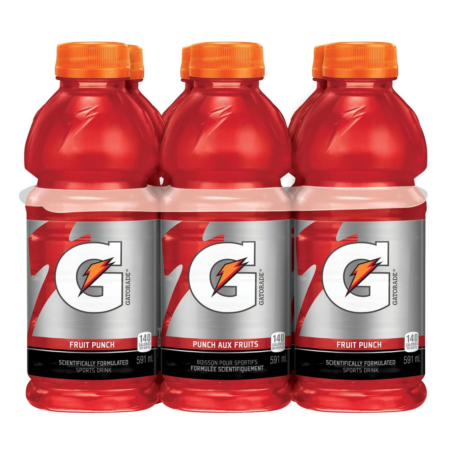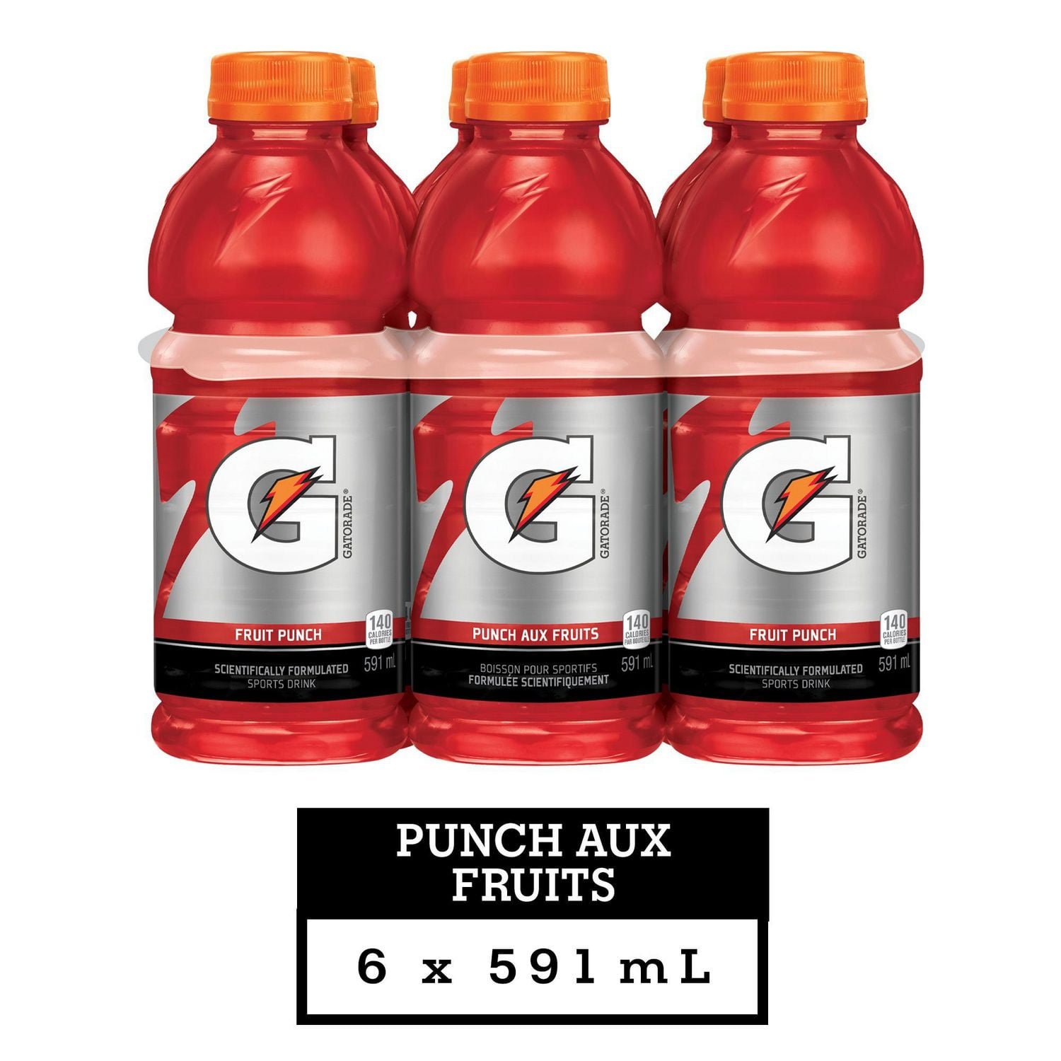 Gatorade ® Fruit Punch Sports Drink is scientifically proven to rehydrate lost fluids. replenish electrolytes lost in sweat. and refuel working muscles with carbohydrates. Refreshing fruit punch flavour. This 6-pack of 591 mL bottles is specifically designed for athletes who want to be at their best in the gym. at practice. and in games.•Gatorade® Fruit Punch Sports Drink
