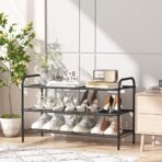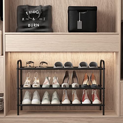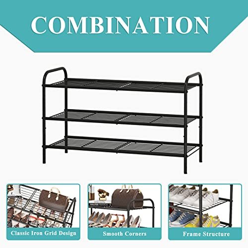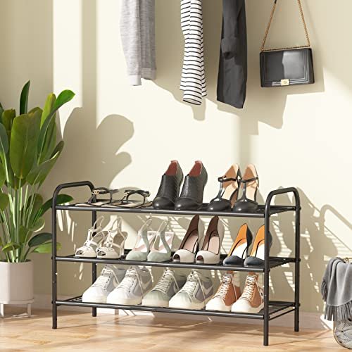 GILLAS 3 Tier Shoe Rack.Shoe Organizers.Metal Shoe Rack for Closet.Shoe Storage for Entryway.Hallway.Bedroom-Black