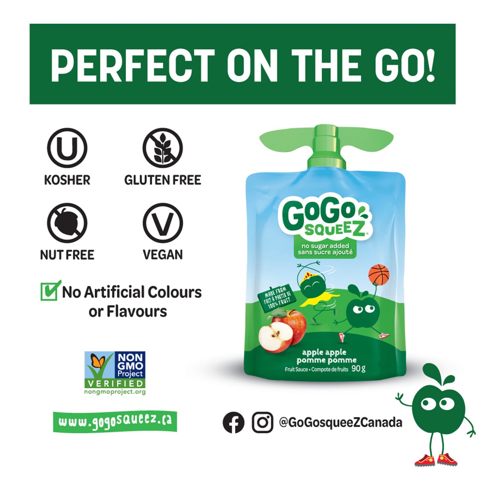 | Fabric Property | – No Sugar Added – Made from 100% real fruit – No Artificial colours. flavours or preservatives – Gluten Free – School Safe & Nut-Free – Non-GMO & Kosher Certified -Canada Organic Certified – Fruit Snack – Fruit sauce Pouches – kids snacks – Applesauce – Real fruit – On the Go – Mess Free |