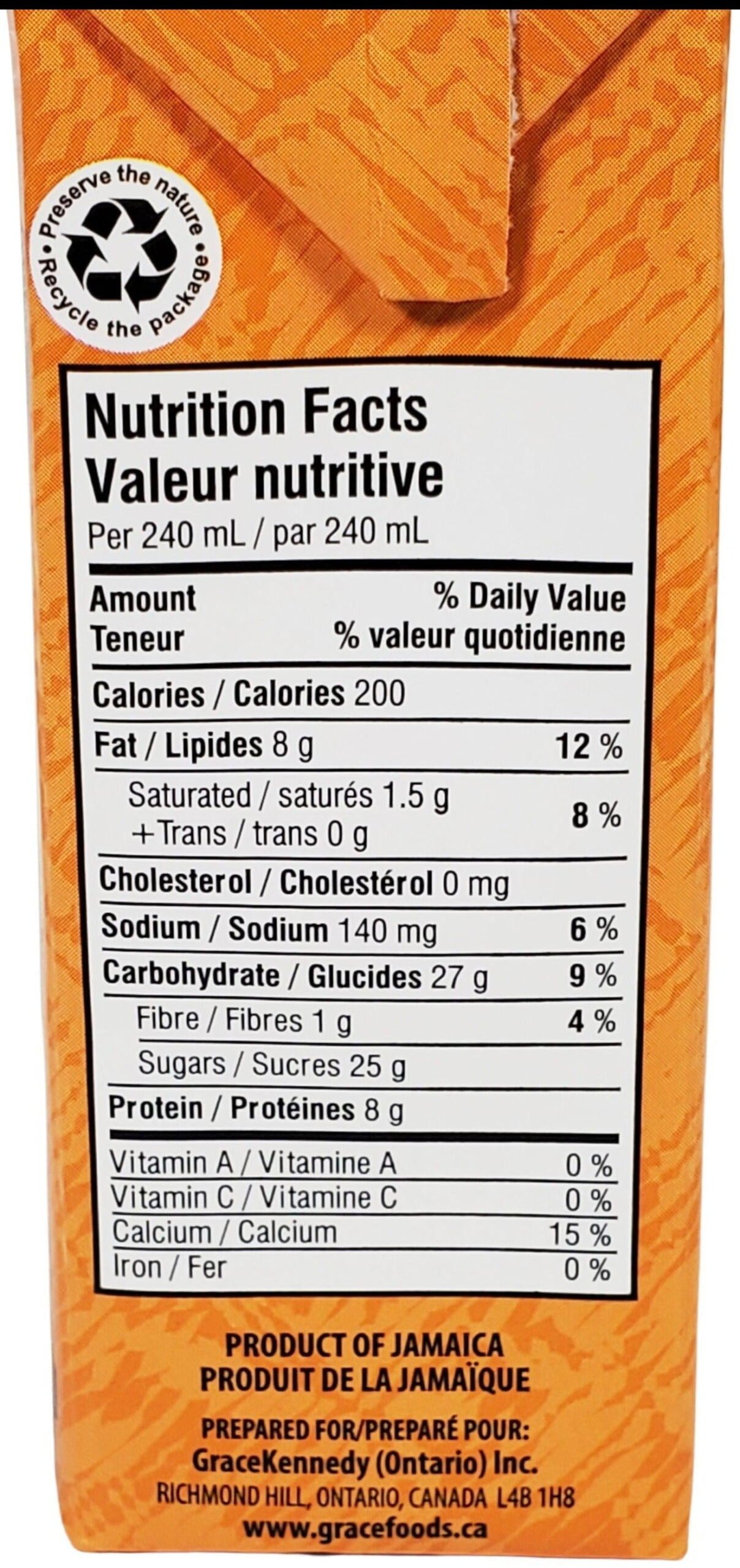 Grace Peanut Punch – Grace juices and drinks are made from the finest quality Caribbean fruits. vegetables and concentrates.The rich. refreshing taste of Grace juices and drinks is popular with Caribbean nationals and visitors alike. Grace juices and drinks are synonymous with quality.