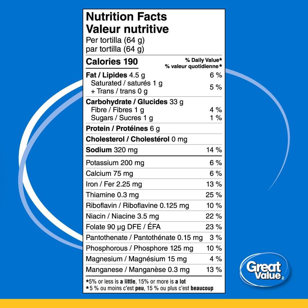 Add flavour to your fiesta with Great Value 10 White Tortillas! With a delightful taste and 10 tortillas per package. you’ll need room for seconds and thirds. Freezer-friendly and family-approved. they’re your go-to for burritos. quesadillas. and even homemade tortilla chips. Don’t be caught tortilla-less this Taco Tuesday. order Great Value 10 White Tortillas today!