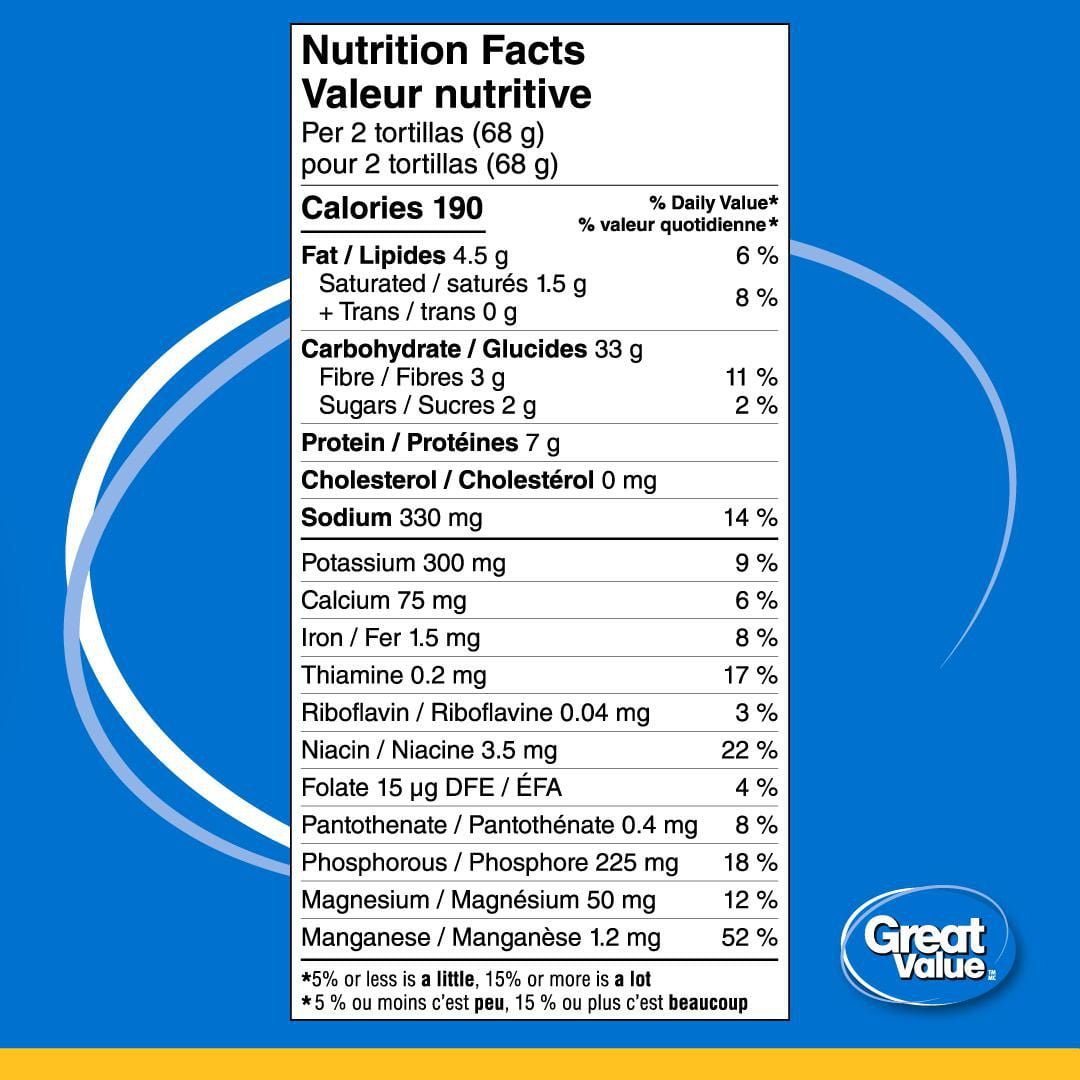 The Ingredient Wise™ symbol appears on Great Value™ products made without these ingredients: synthetic colours. artificial flavours and sweeteners. hydrogenated vegetable oil. monosodium glutamate.• 10 tortillas