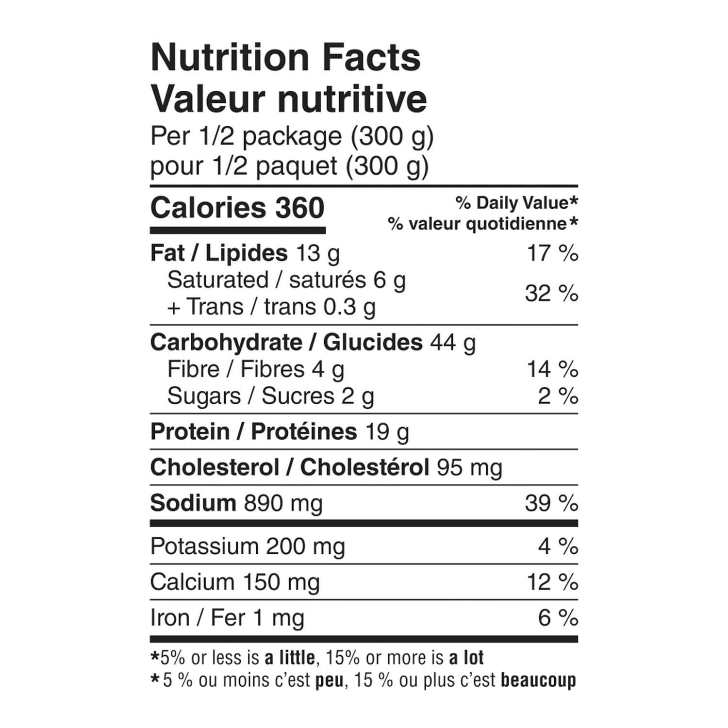 | Ingredients | Fettuccine: durum wheat semolina. water. canola oil. Alfredo Sauce: cream. milk. water. canola oil. Parmesan cheese. Romano cheese. modified corn starch. butter. salt . herbs spices. garlic powder. Shrimp: shrimp. salt. sodium tripolyphosphate. Contains: wheat. milk. shrimp. |
