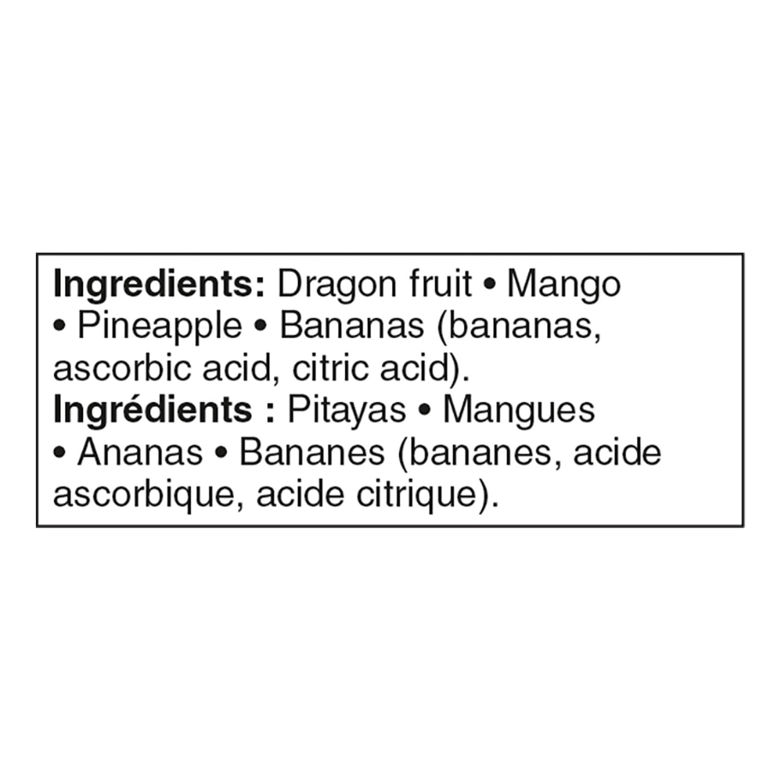 | Ingredients | Dragon fruit. mangoes. pineapples. bananas (bananas. ascorbic acid. malic acid. citric acid). |