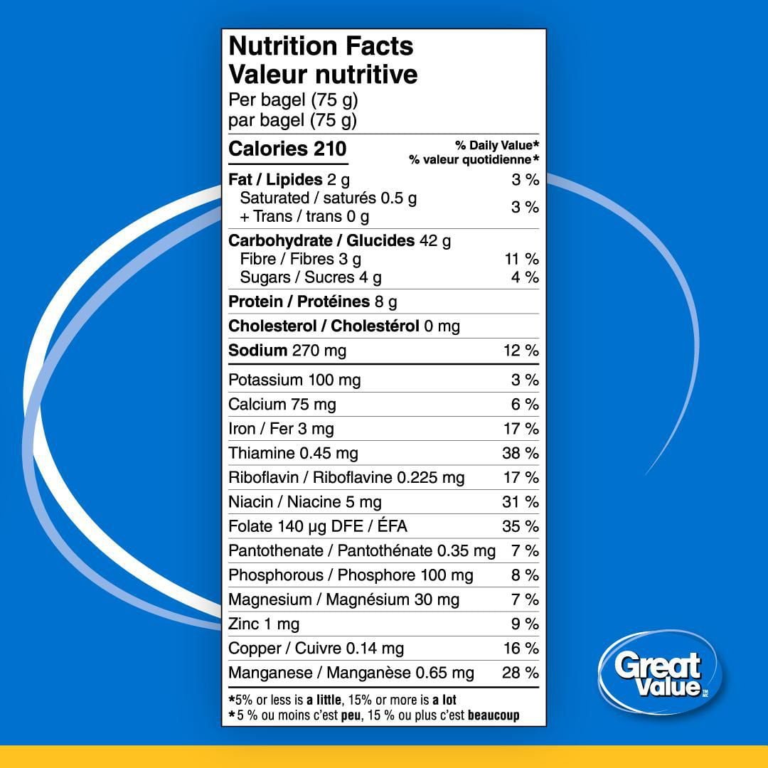The Ingredient Wise™ symbol appears on Great Value™ products made without these ingredients: synthetic colours. artificial flavours and sweeteners. hydrogenated vegetable oil. monosodium glutamate.• 6 bagels