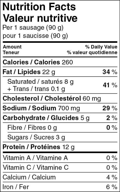 Ready for grilling Great Value German-Style Smoked Sausages are irresistibly meaty and seasoned with hints of marjoram. nutmeg and black pepper for lots of authentic flavour. Perfect for Oktoberfest. or any time throughout the year. serve them on freshly toasted sausage buns with sauerkraut and hot. spicy mustard.•Made in Canada
