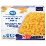 Creamy and delicious. Great Value Macaroni & Cheese is a classic comfort food that aims to please. A hearty recipe that mixes ooey-gooey cheese with perfectly-cooked macaroni. this satisfying frozen meal is also easy to prepare. This cheese macaroni is a smart option for workday lunches. weeknight dinners. and meals on the go. To enjoy this macaroni. simply lift one corner of the cover. cook it at 350° for 35 minutes. stir. recover the tray. and put it back into the oven for another 5-10 minutes. Or follow the same instructions. instead microwaving it on high for 4 minutes. then again for an additional 1-1 ½ minutes. See full details on packaging. The Ingredient Wise symbol appears on products made without these ingredients: synthetic colours. artificial flavours and sweeteners. hydrogenated vegetable oil. monosodium glutamate.• Ooey-gooey frozen macaroni that’s perfect for busy weeknight dinners