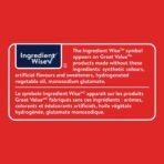The Ingredient Wise symbol appears on products made without these ingredients: synthetic colours. artificial flavours and sweeteners. hydrogenated vegetable oil. monosodium glutamate.