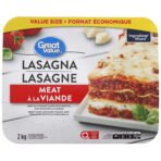 A frozen dinner that’s packed with flavour. Great Value Meat Lasagna is a crowd-pleasing comfort food for any night of the week. This rich and hearty frozen lasagna contains savoury beef in a tomato sauce. layered with creamy ricotta and melty mozzarella cheeses. This 8-serving. 2kg package of meat lasagna is quick and economical. going from the freezer to the tabletop in just over an hour on busy days when meal prep is a challenge. Prepare this frozen meat lasagna in a conventional oven by following the detailed instructions on the package.