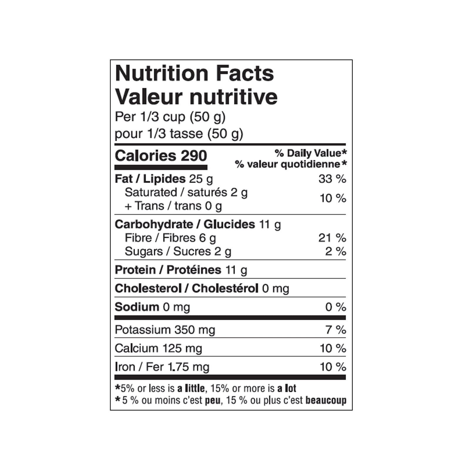 | Fabric Property | • High source of fibre• 24% of the Daily Value for fibre per 50 g serving |