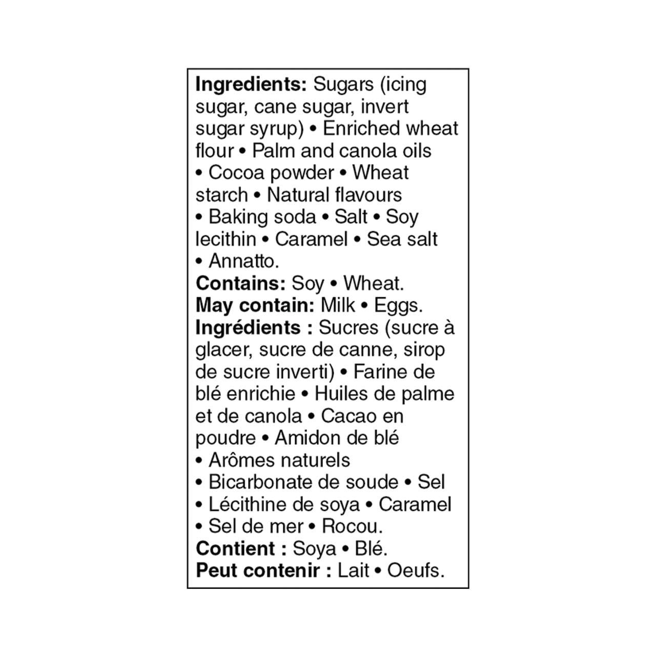 A delicious treat. Great Value Salted Caramel Creme Sandwich Cookies hit all the right notes in every bite. These cookies feature an enticing layer of salted caramel creme between crisp. chocolatey wafers in a classic match of sweet and salty. Terrific for snacking or paired with your favourite hot or cold beverage. they’re ideal for dunking during your coffee break or for dessert. Free from artificial flavours and colours. and made in a peanut-free facility. it is time to stock up on these salted caramel cookies. sure to please family and friends. The Ingredient Wise symbol appears on products made without these ingredients: synthetic colours. artificial flavours and sweeteners. hydrogenated vegetable oil. monosodium glutamate.• Salted caramel creme sandwich cookies