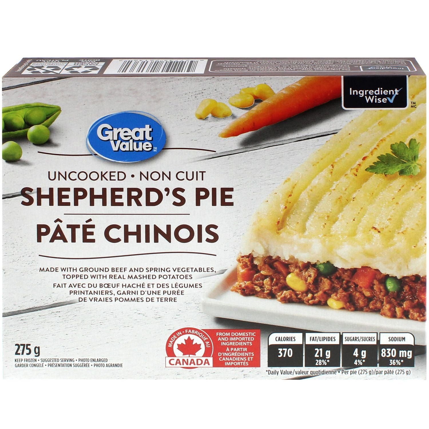 | Ingredients | Potatoes. Cooked beef. Water. Onions. Carrots. Butter. Milk ingredients. Peas. Corn. Textured soy protein product. Modified corn starch. Crushed garlic. Salt. Yeast extract. Citric acid. Flavour. Caramel colour. Tomato powder. Spices. Sulphites.Contains: Milk. Soy. Sulphites. |