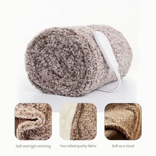 • 【Comfortable fabric】This fluffy heated throw blanket utilizes 100% premium polyester that is super soft.fluffy.anti-pilling.durable.heated blanket throw gives you natural comfort.even without electricity.it is warmer than ordinary electric throw blanket.plug it in and it turns into a warm blanket.and the regular size is 50”x60”.