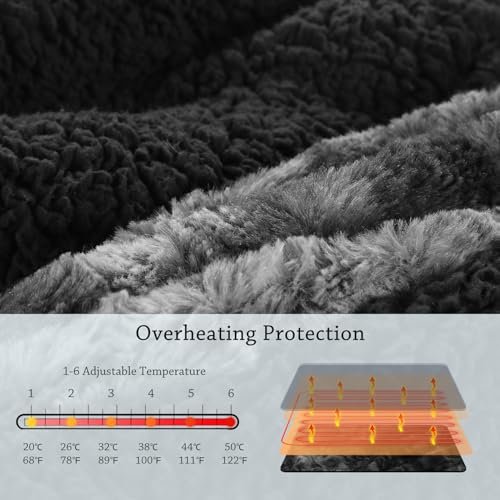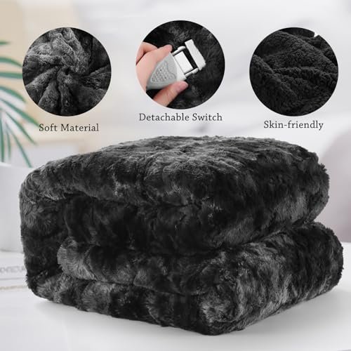 Heated Electric Blanket Luxurious Soft Faux Fur Blanket 50 x 60 with 6 Heating Levels & 4 Hours Timer Setting. Comfort Warm Blanket for Home Office Use. Machine Washable