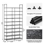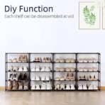- △PRACTICAL DESIGN: This 10-tier shoe rack organizer is designed with a double-row structure. with three additional steel pipes in the middle of each layer for support. which greatly improves the product’s load-bearing capacity and overall structural stability. At the same time. this shoe rack can also use part of the accessories assembled into a single row to adapt to narrow spaces.
