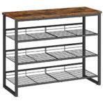 HOOBRO Shoe Rack. 4 Tier Shoe Organizer. Adjustable Shoe Shelves. Flat or Slanted. Holds 9-12 Pairs. Stable and Durable for Entryway. Closet. Rustic Brown and Black BF09XJ01