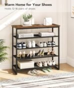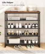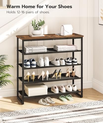 HOOBRO Shoe Rack. 5 Tier Shoe Storage Organizer. Shoe Shelf with 4 Fabric Shelves and Top Panel. Holds 16-20 Pairs of Shoes. for Entryway. Closet. Steel Frame. Industrial. Rustic Brown BF50XJ01