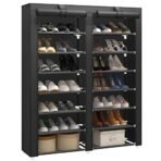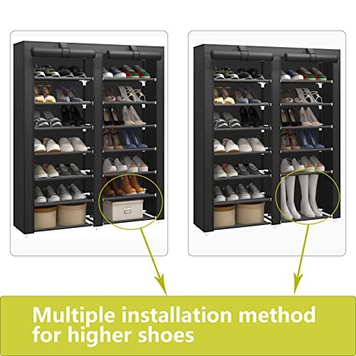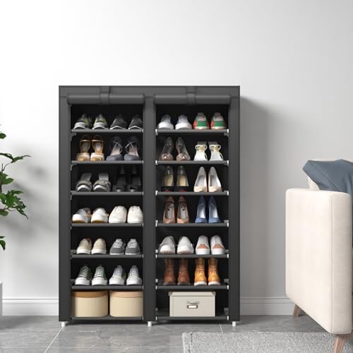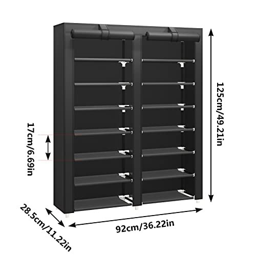 JIUYOTREE 7 Tier Shoe Rack Storage Organizer with Big Capacity.Double Row Shoe Cabinet.Shelf.Closet with Nonwoven Fabric Cover.Black