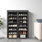 • 【HIGH QUALITY MATERIALS】–The shoe rack is composed of high-quality metal tube. PP plastic joint and non-woven fabric.The metal pipe not only has strong bearing capacity. but also won’t rust.The PP plastic joint is made of high-quality plastic and connected firmly.The non-woven fabric is waterproof. it has strong load-bearing capacity and has no irritating odor that damages the human body. and it is environmentally friendly and healthy.