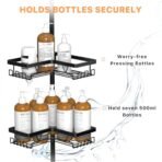 KEGII Corner Shower Caddy Tension Pole. Rustproof Bathroom Organizer with Hooks & Soap Holder. Adjustable from 25 to 114.2 inch. 4-Tier Corner Shower Rack for Bathtub Shampoo Storage – Black