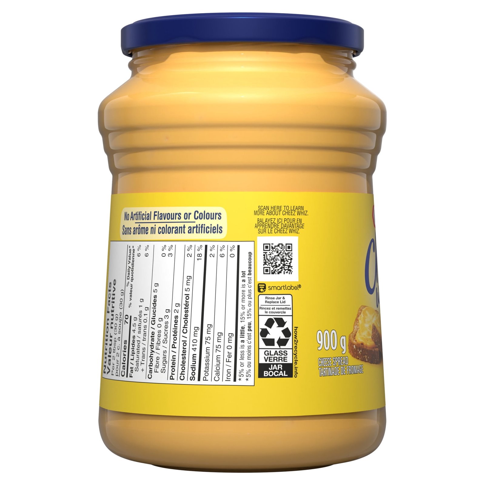 | Fabric Property | •Made with real cheese •Classic Original Cheez Whiz is a rich and flavourful cheese dip •Perfect for snacking or entertaining •Serve Cheez Whiz with your favourite chips or veggies •Great in nachos. cheesesteaks or homemade mac & cheese |