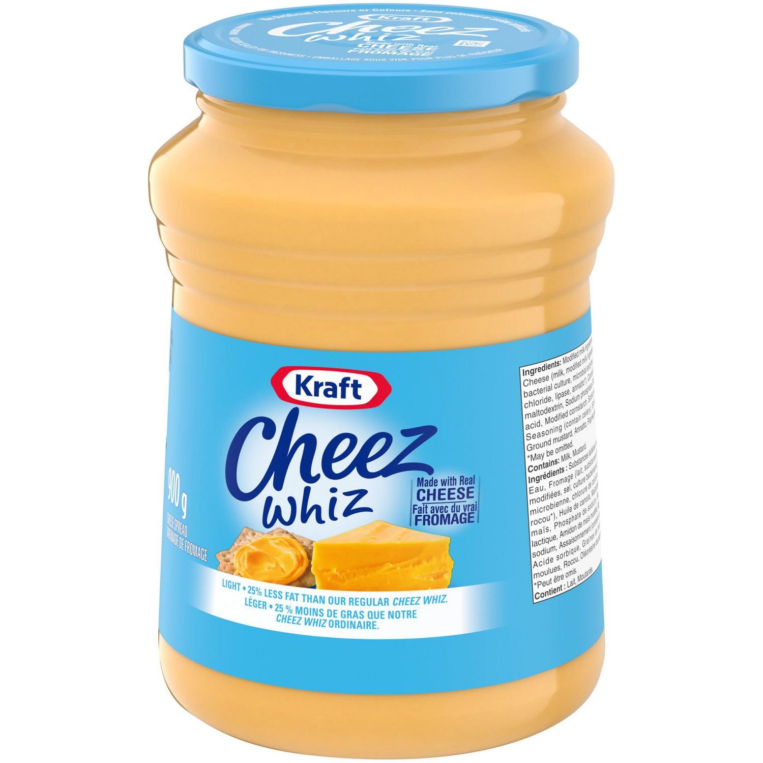 Kraft Cheez Whiz Light Cheese Spread has 37% less fat than our regular Cheez Whiz. so go ahead and indulge in this delicious cheese sauce. Great in recipes or as a snack with your favourite chips or crackers.