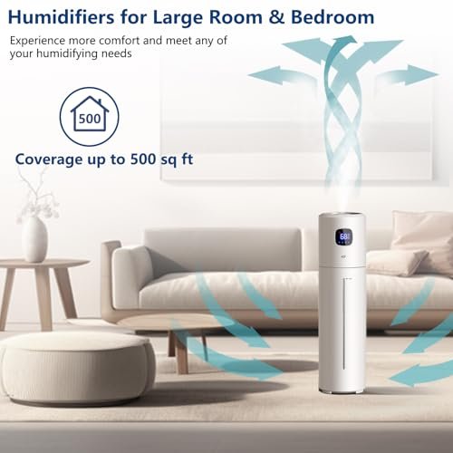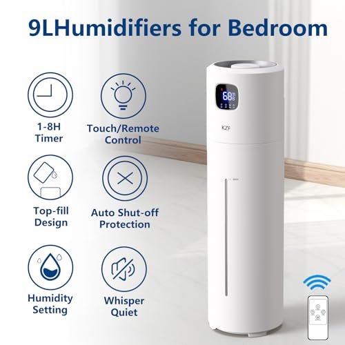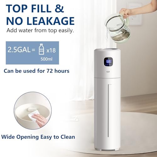 KZF 4L/1 Gal Large Humidifier for Bed Room. Quiet Cool Mist Top Fill Essential Oil Diffuser with 25Watt for Home Large Room 360° Nozzle. Rapid Ultrasonic Humidification (White 2)