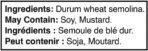 | Ingredients | Durum Wheat Semolina | Durum Whole Wheat Semolina | Organic Durum Wheat Semolina | Brown rice. Yellow Maize. White Maize. Rice. Tapioca Starch. Quinoa | Premium durum wheat from the Californian desert. Fresh Eggs | Durum Wheat Semolina |