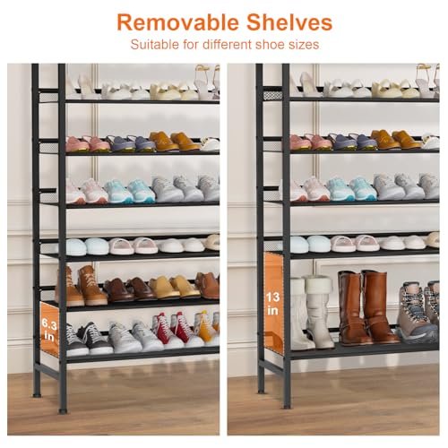 • 【Sturdy & Stable】This tall shoe rack uses a heavy-duty metal frame and high-quality metal mesh. which is still stable and durable for daily use. The sturdy metal frame ensures excellent load-bearing capacity. making it an ideal choice for your closet or entrance.