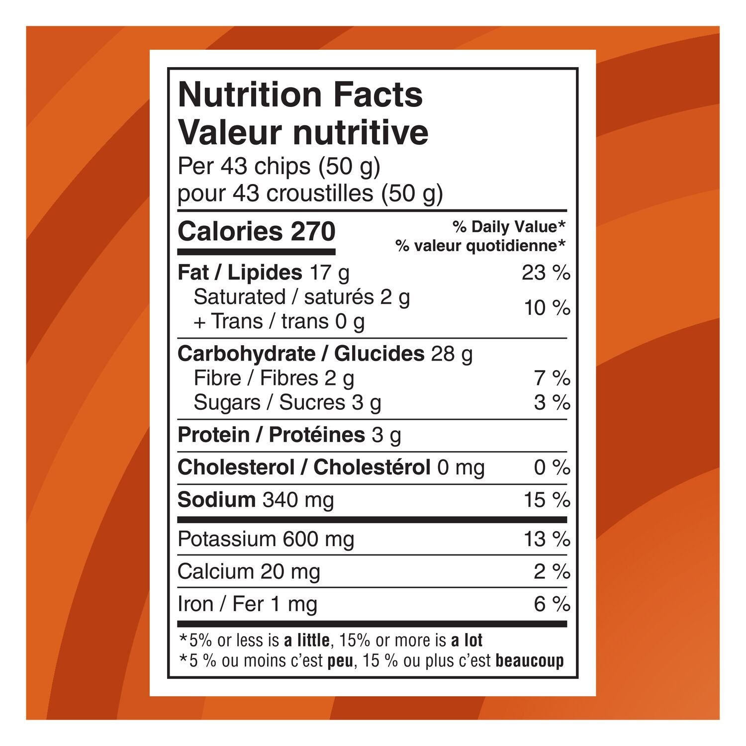 | Fabric Property | A CANADIAN FAVOURITE — We’ve been a taste tradition in Canadian homes for many years. GUARANTEED FRESH — You can always count on Lay’s potato chips to pack delicious taste and crispy crunch. made with flavourful ingredients. DELICIOUS POTATOES – It all starts with quality potatoes. Simple. wholesome and real – so you get that perfect. crispy chip every time you reach for Lay’s. A SNACK TIME STAPLE – Snack time just isn’t complete without the timeless taste of Lay’s potato chips! LOTS OF VARIETY — Available in a delicious range of textures and varieties. Whichever flavour you choose. there’s something to satisfy your potato chip needs. |