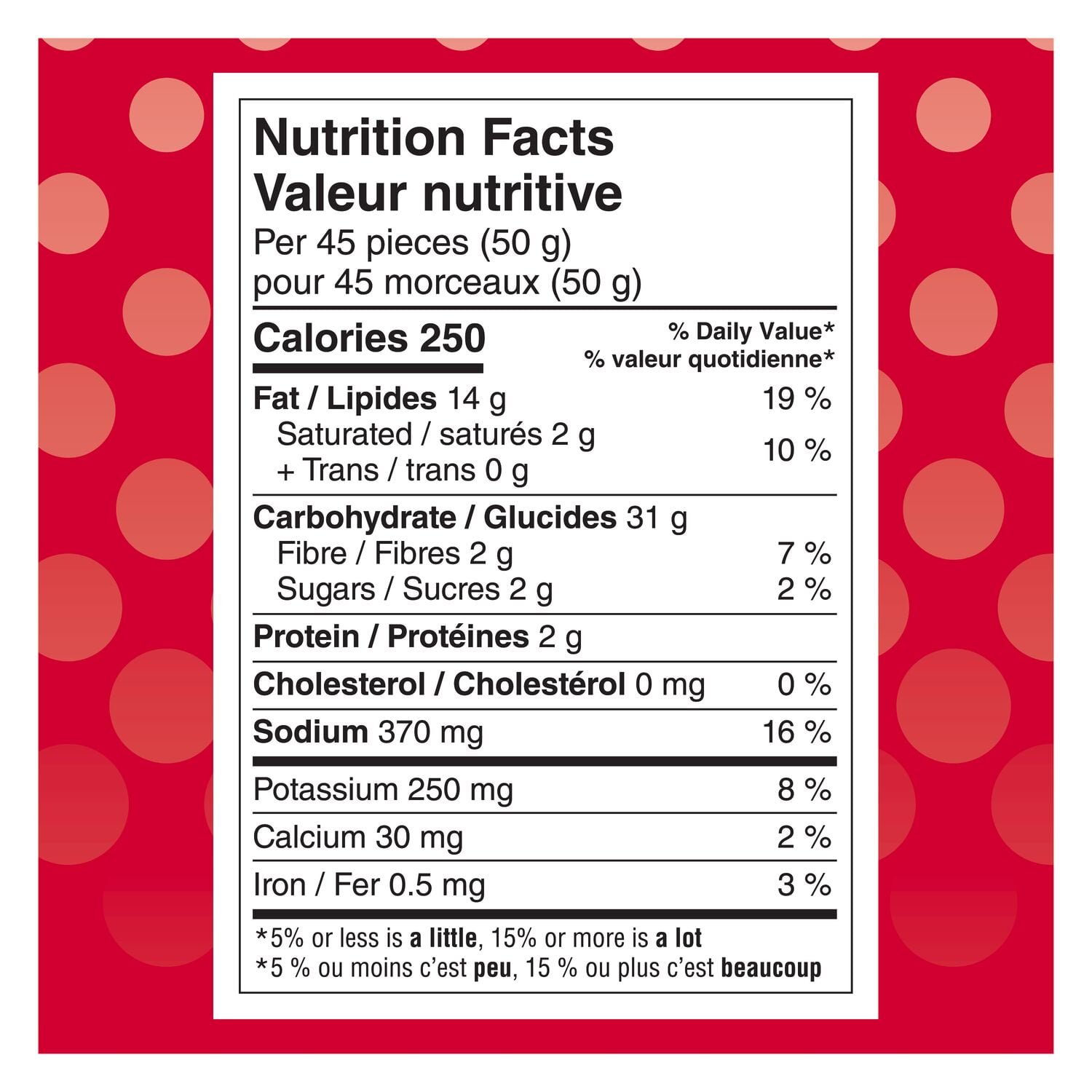 | Fabric Property | A CANADIAN FAVOURITE — We’ve been a taste tradition in Canadian homes for many years. GUARANTEED FRESH — You can always count on Lay’s to pack delicious taste and crispy crunch. made with flavourful ingredients. PERFECTLY POPPED – These perfectly poppable crispy potato bites are sure to satisfy your taste buds! A SNACK TIME STAPLE – Snack time just isn’t complete without the timeless taste of Lay’s! LOTS OF VARIETY — Available in a delicious range of textures and varieties. Whichever flavour you choose. there’s something to satisfy. |