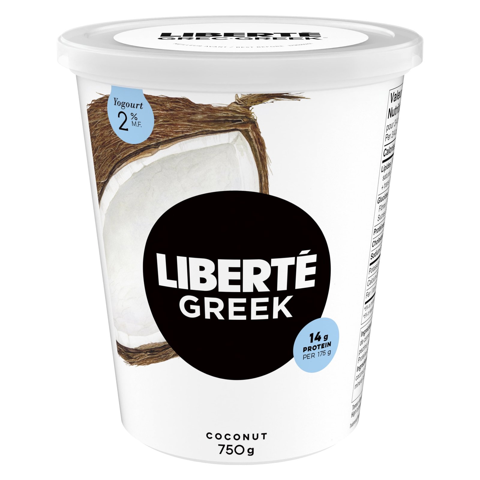 | Fabric Property | GREEK YOGURT: Liberté Greek 2% Yogurt is made of 2% milk fat and features an incredibly rich and creamy texture; Crafted the Liberté way. COCONUT FLAVOUR: Creamy texture and delicious coconut flavour; Perfect for breakfast or afternoon kids snack. THICK AND CREAMY TEXTURE: Crafted using traditional Greek methods and strained based on the principles of old-time cheesecloth draining; 2% Yogurt that’s delicious on it’s own. with fruit or cereal. or as a versatile ingredient when cooking. REAL-FOOD SNACK: Yogurt featuring 13 grams protein per serving; No gelatin and contains no artificial colours or flavours |