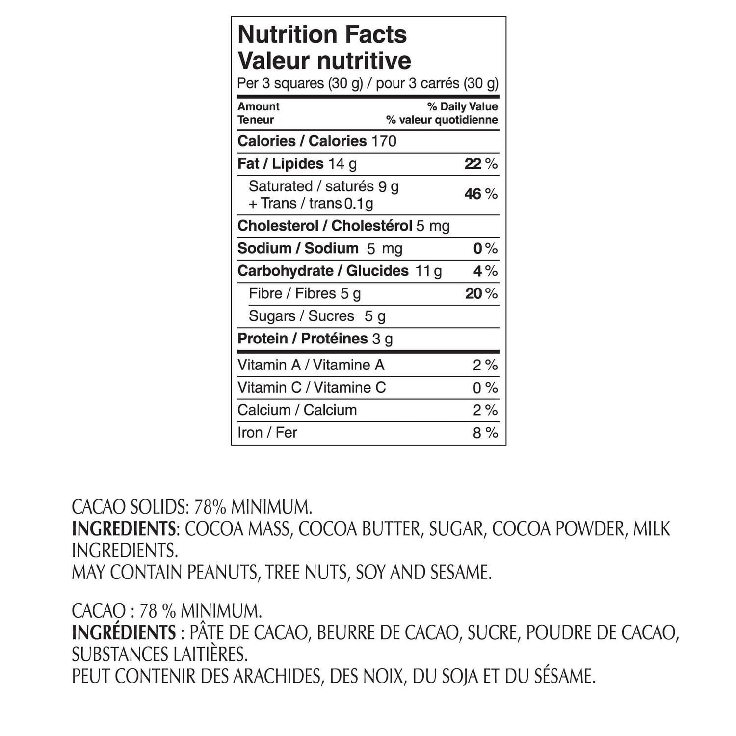 | Fabric Property | •Dark chocolate bar. 100g•Made with 78% cacao•Lindt oversees every step of the chocolate-making process. from bean to bar•Perfect paired with your favourite coffee. tea or wine•Created by Lindt Maître Chocolatiers•Store in a cool. dry place |